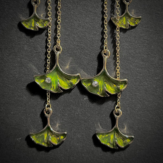 Ginkgo Leaf Enamel Stud Earrings with Ear Jacket
