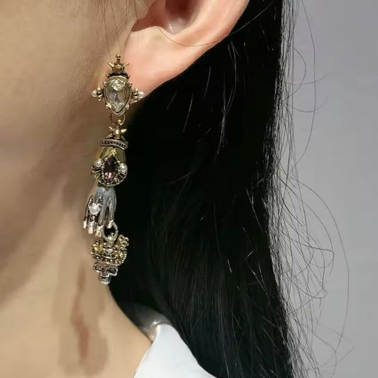 Hand & Skull Mixed Metal Earrings