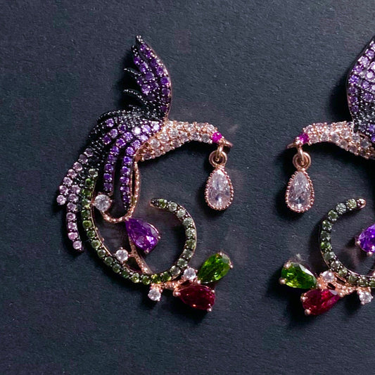 Phoenix Bird Rose Gold & Multi Color Earrings