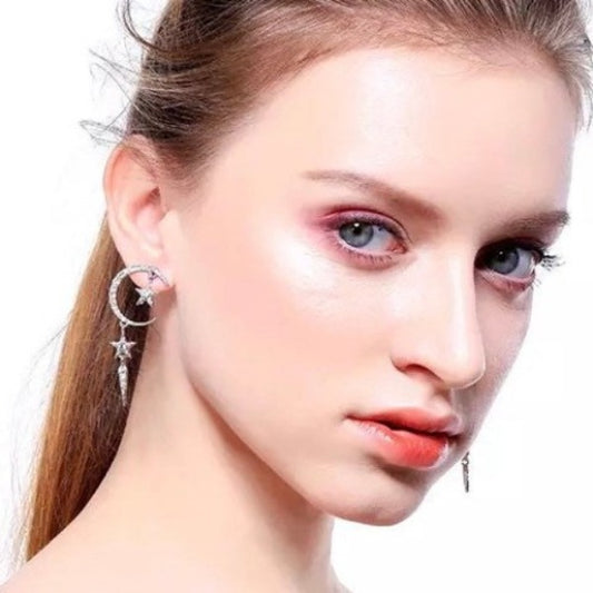 Moon & Stars Asymmetrical Silver Earrings