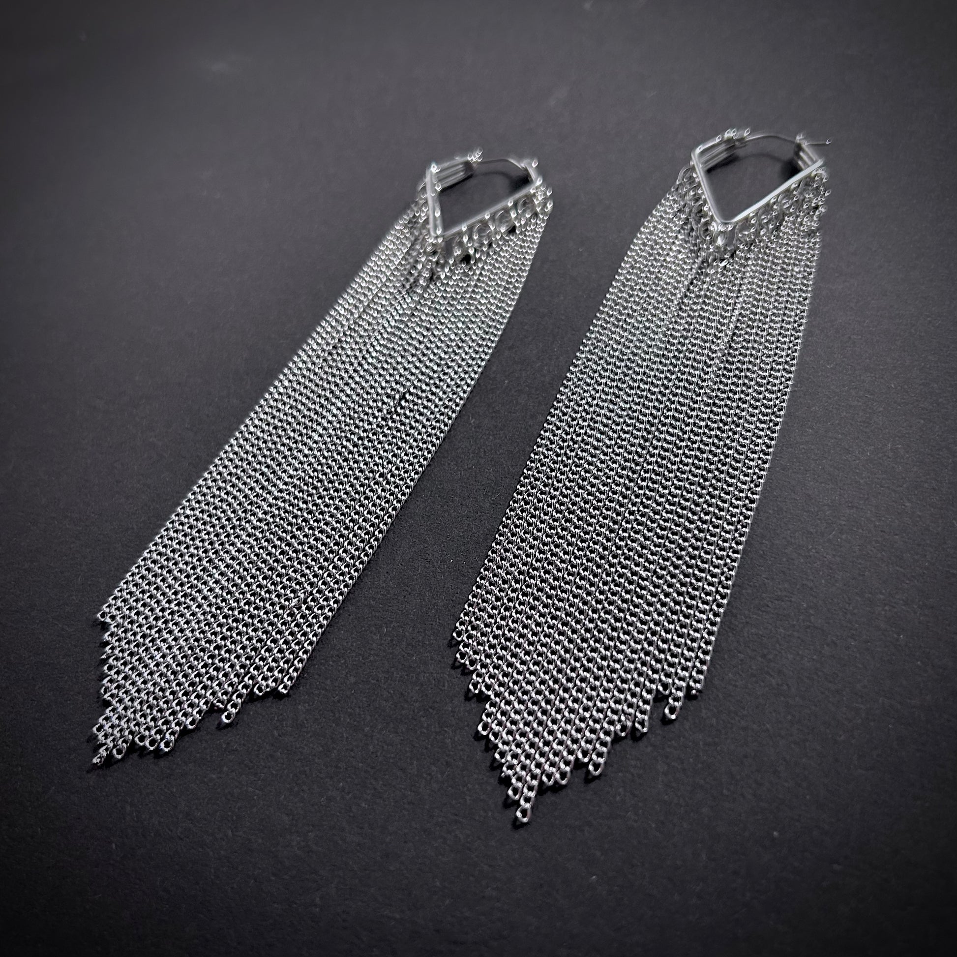 Extra Long Chain Tassel Shoulder Duster Earrings in Silver