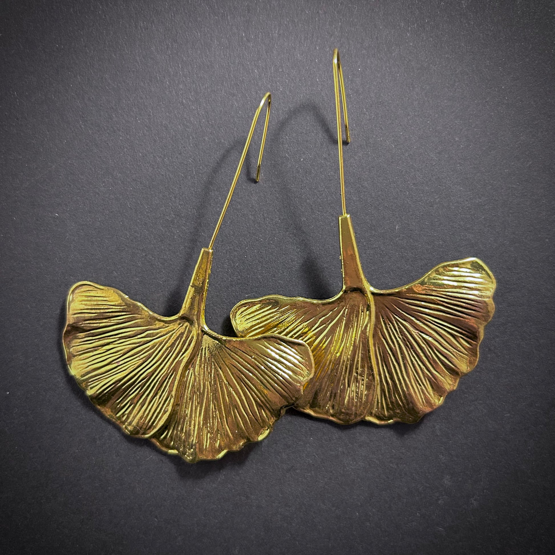 Large Ginkgo Leaf Statement Earrings in Gold