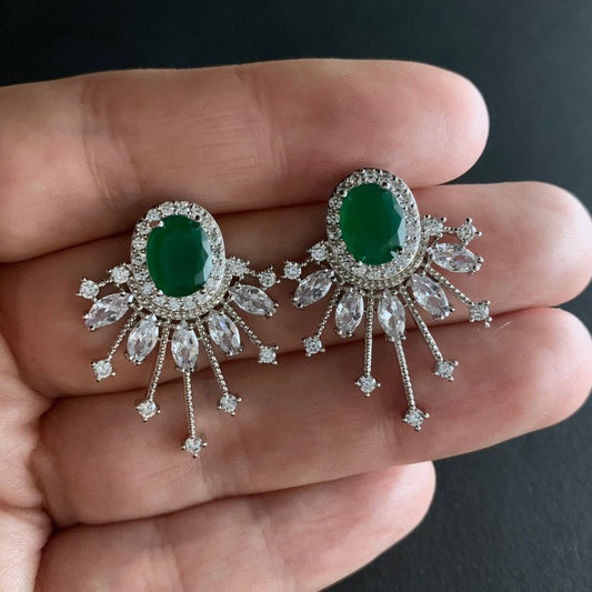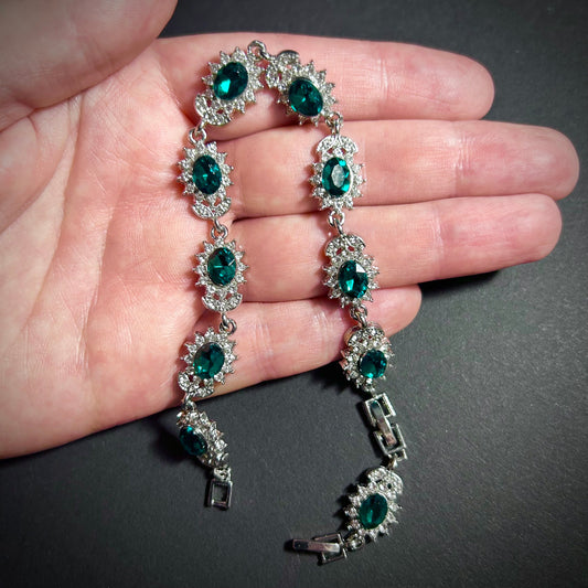 Emerald & Silver Flower Rhinestone Tennis Bracelet