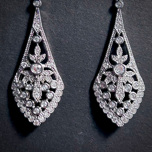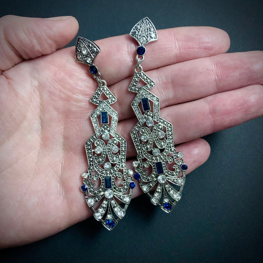 Art Deco Silver & Sapphire Large Chandelier Earrings