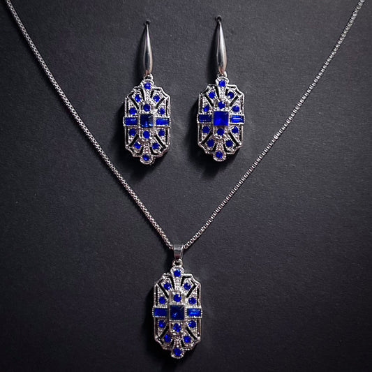 Art Deco Bridal/Bridesmaids Jewerly Set in Silver & Sapphire