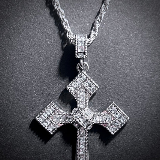 Crucifix Clear Rhinestone Pendant Necklace in Silver