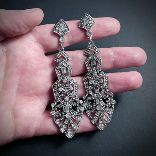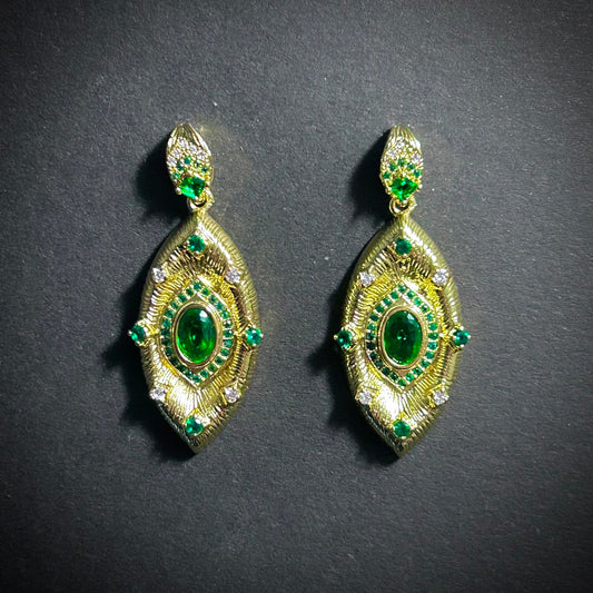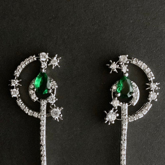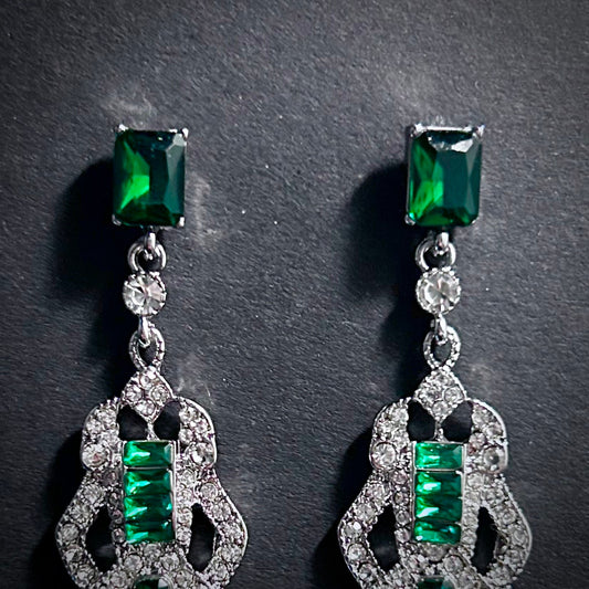 Art Deco Emerald & Antique Silver Dangle Earrings