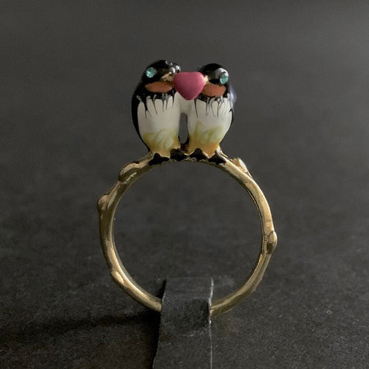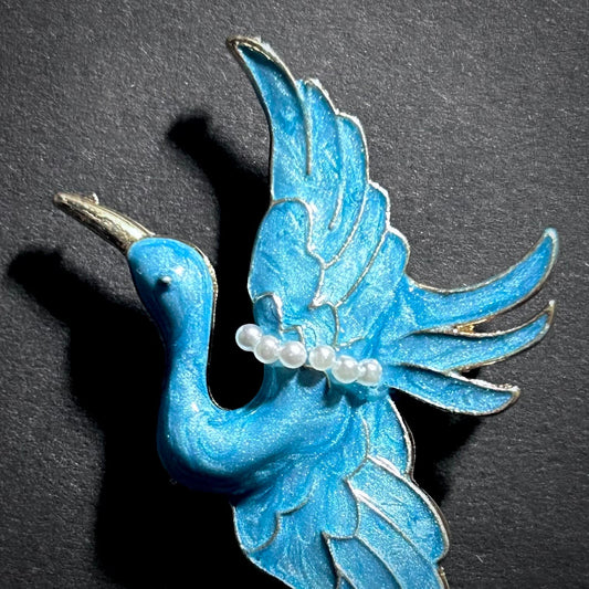 Flying Crane Turquoise Enamel & White Pearl Brooch
