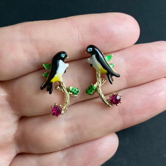 Etched Gold & Emerald Rhinestone Stud Earrings