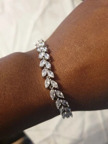 Elegant & Simple Silver Tennis Bracelet with Marquise Cubic Ziconias