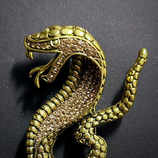 Hissing Cobra Snake Gold Brooch & Pendant with Rhinestones