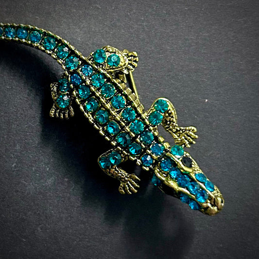 Crocodile Emerald/Turquoise Rhinestones Brooch