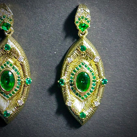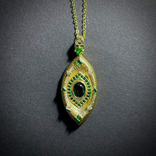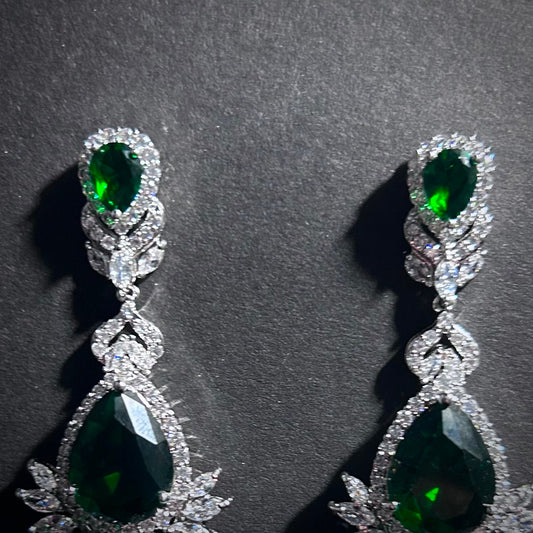 Etched Gold & Emerald Rhinestone Jewelry Set