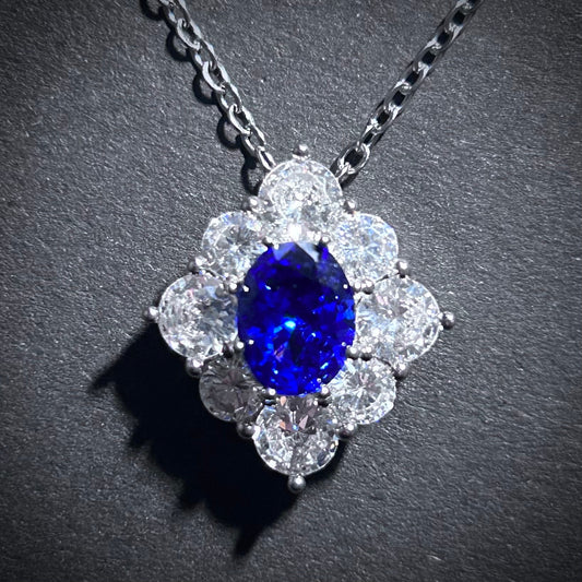 Sapphire & Clear Diamond Shaped Pendant Dainty Necklace
