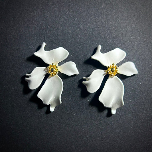 Flower Mixed Metal Earrings in Gold & Pearlescent Silver