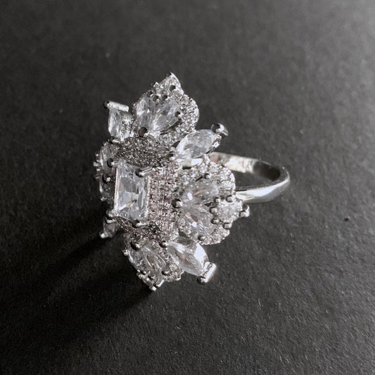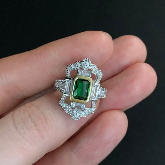Luxurious Emerald Green & Silver Cocktail Ring