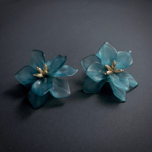 Sheer Pale Green & Gold Flower Light Statement Earrings
