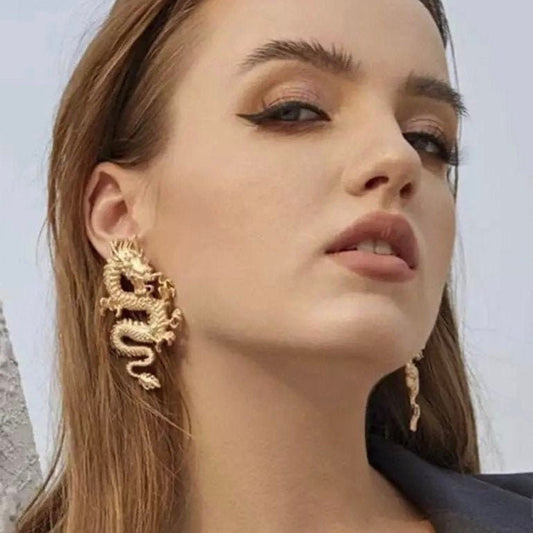 Hissing Dragon Large Gold Statement Earrings