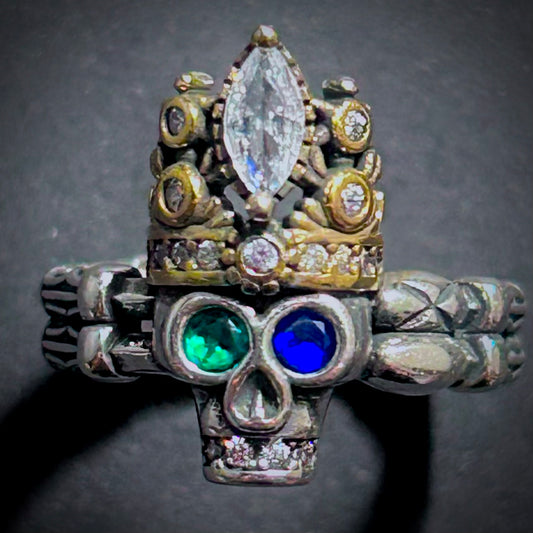 Skull, Crown & Rhinestones Mixed Metal Ring