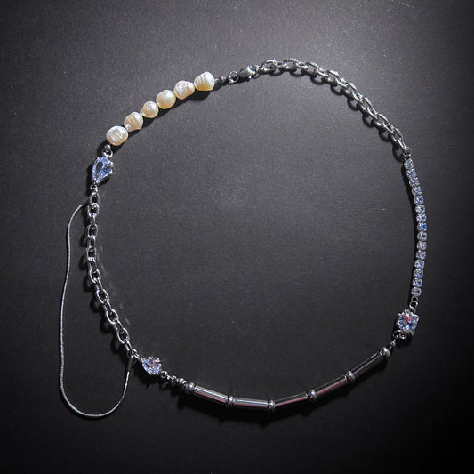 Mixed Chains, Pearls & Cubic Zirconia Choker Necklace