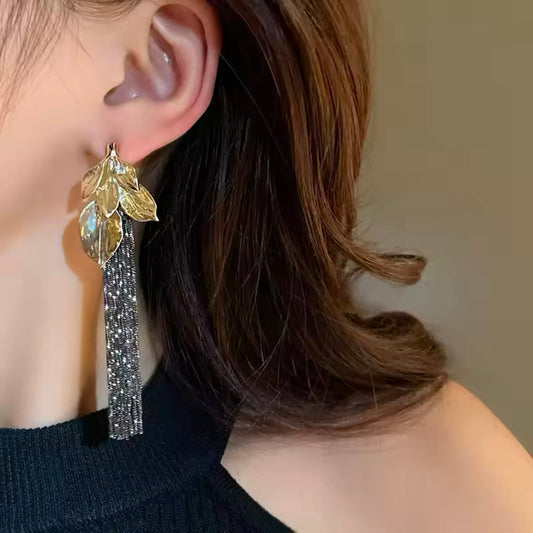 Gold & Black Leaves & Tassel Mixed Metal Earrings