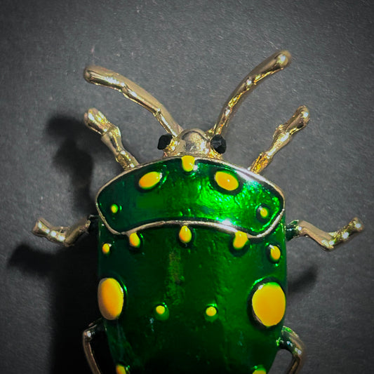 Green & Yellow Cloisonné Enamel Beetle Brooch