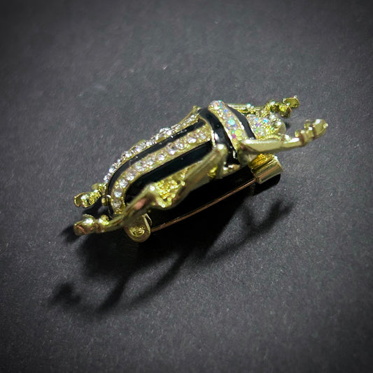 Art Deco Black Enamel & Rhinsestone Gold Beetle Brooch