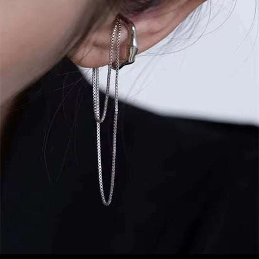 No Piercing Ear Cuff with Chains in Silver