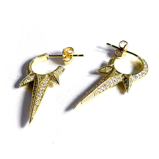 Spike Hoop Micro Paved Earrings in Gold