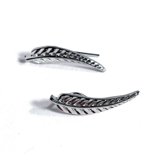 Leaf Ear Climber Earrings in Silver