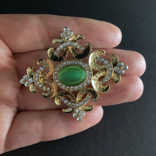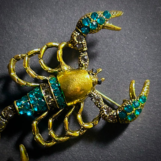 Gold Scorpion Brooch with Turquoise & Clear Rhinestones