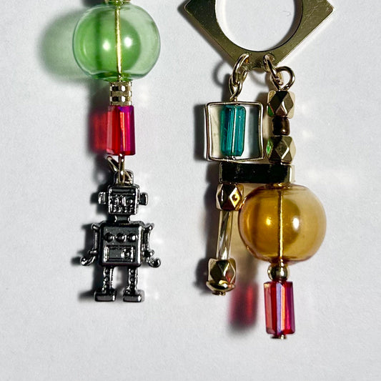 Robot, Geometry & Beads Mismatched Gold Hook Earrings