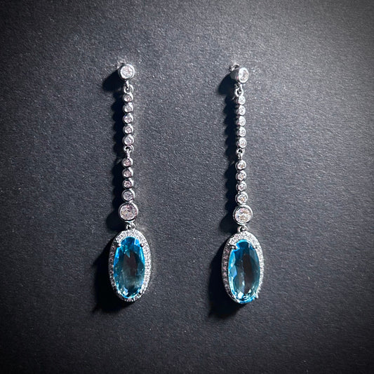 Oval Aquamarine & Clear Cubic Zirconia Delicate Earrings