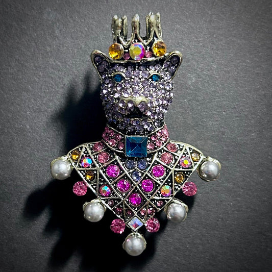 Wolf King Brooch in Gold & Multicolor Rhinestones