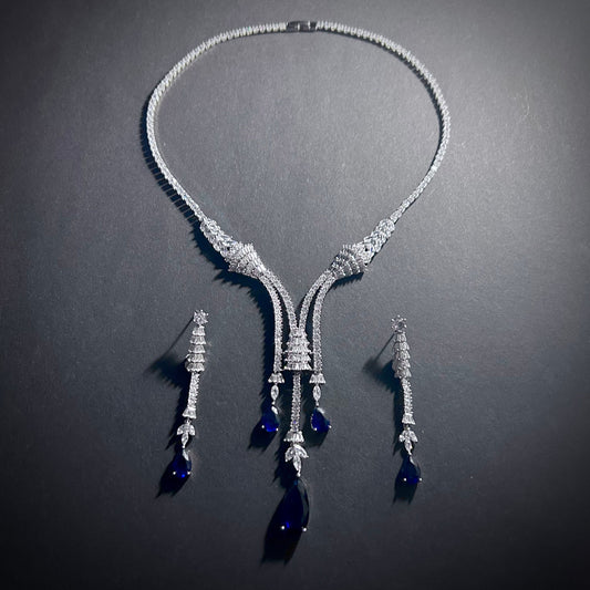 Art Deco Sapphire Silver Bridal Jewelry Set