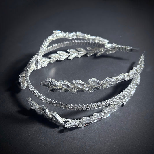Three Row Vine Wreath Diadem/Tiara In Silver & Clear Rhinestone