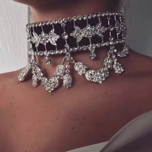 Luxurious Velvet & Rhinestone Ribbon Choker in Black and Silver