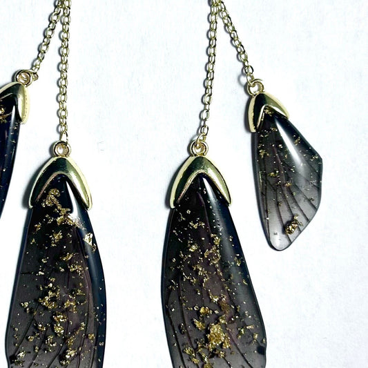 Fairy Wing Ombre Black & Gold Flake Earrings