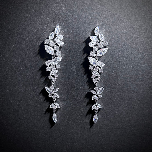 Falling Leaves Marquise Cubic Zirconia Earrings in Silver