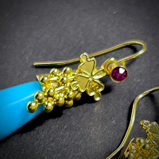 Turquoise Teardrop & Amethyst Rhinestone Gold Hook Earrings
