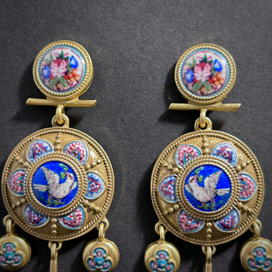 Victorian Micro Mosaic Chandelier Earrings in Gold