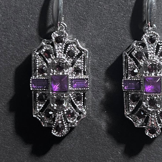 Art Deco Bridal/Bridesmaids Earrings in Silver & Amethyst