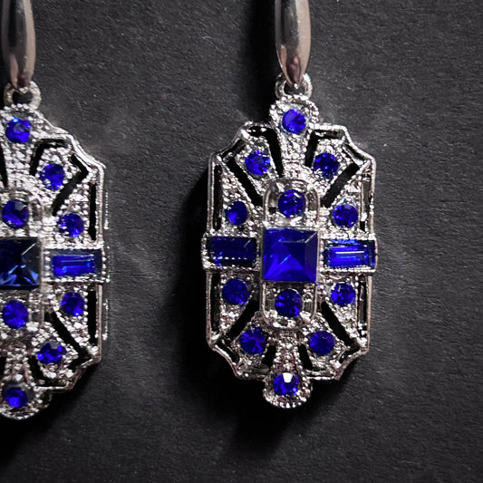Art Deco Bridal/Bridesmaids Earrings in Silver & Sapphire