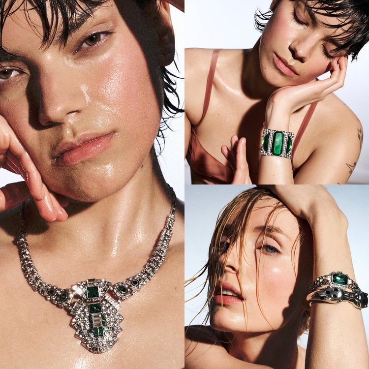 Our Art Deco bracelets continue that same story of bold geometry and refined opulence, wrapping the wrist in structured beauty. Designed to capture light and movement, they feature intricate links, gemstone accents and metallic finishes that echo the glamour of the era. Some designs embrace clean, architectural symmetry, while others play with contrasting textures and Art Deco motifs for a statement that feels both vintage and contemporary.