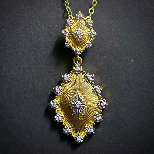 Etched Gold & Clear Rhinestone Pendant Necklace