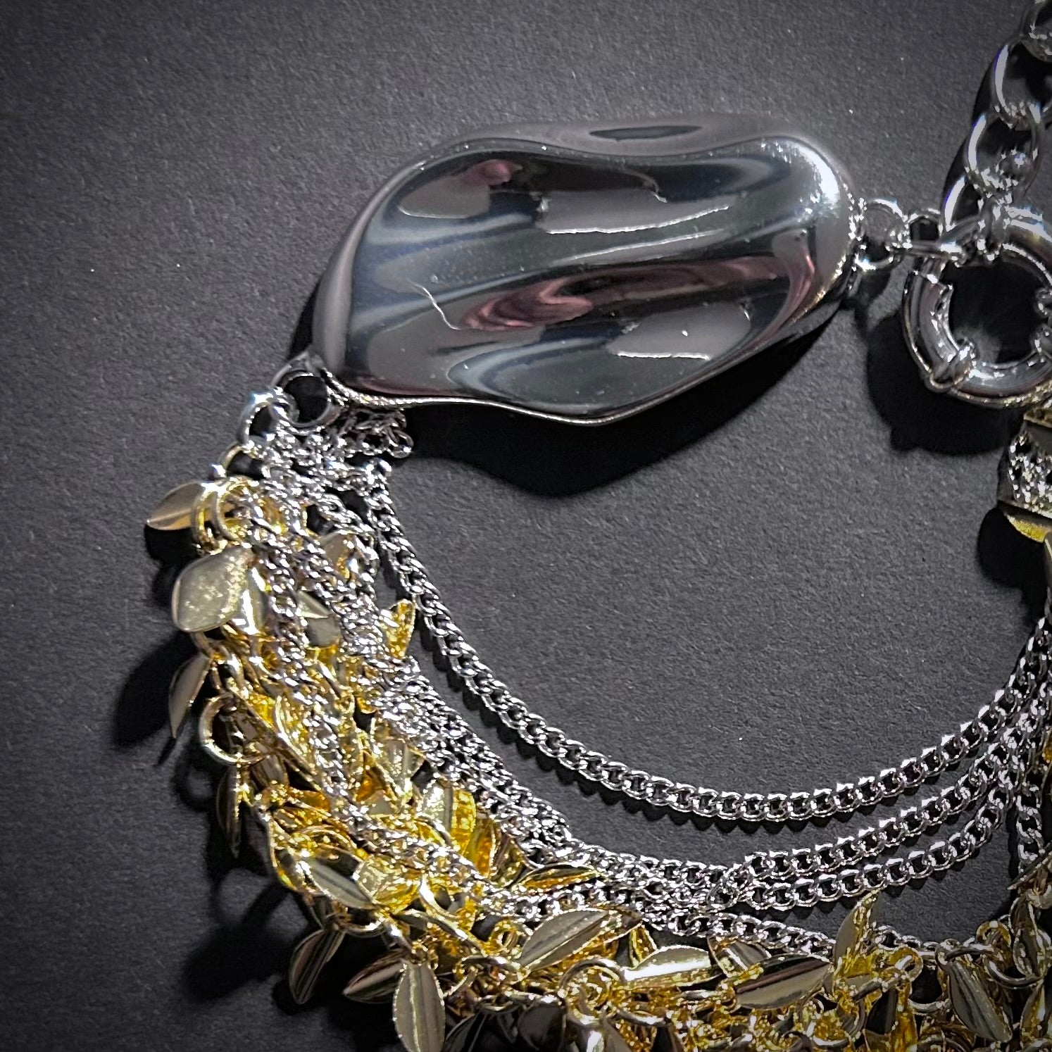 Leaves & Chain Organic Shaped Mixed Metal Statement Bracelet
