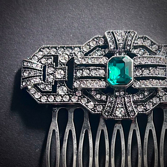 Art Deco Emerald & Antique Silver Decorative Hair Comb