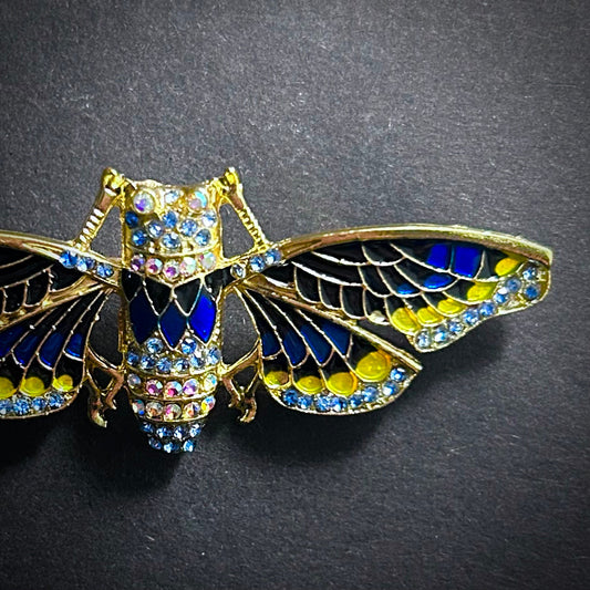 Moth Blue Cloisonné Enamel & Rhinestone Brooch