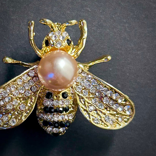 Bee Rhinestone & Champagne Pearl Gold Brooch