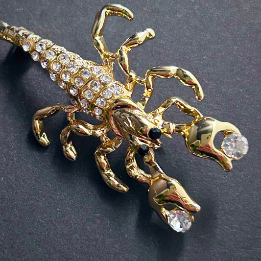 Art Deco Black Enamel & Rhinsestone Gold Beetle Brooch